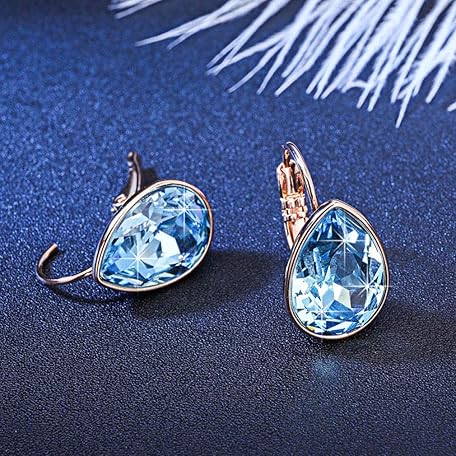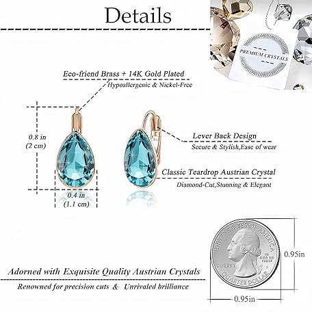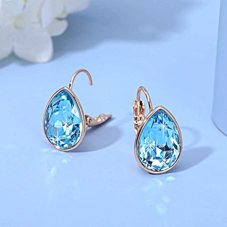 • ティアドロップ スワロフスキー クリスタル レバーバック ドロップイヤリング レディース 14K ローズゴールドメッキ 低刺激性ジュエリー