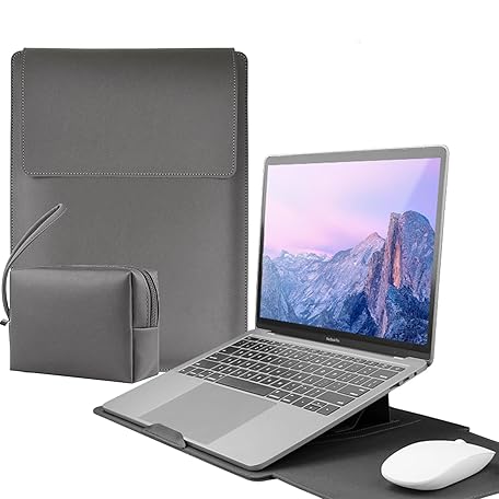 縦型ノートパソコンスリーブレザーケース 15-15.6-16インチ MacBook Air M4 M3 M2 M1 HP Acer Dell Lenovo ASUS ノートブック対応 フェイクレザーカバーケース アクセサリーバッグ付き(グレー、15~16インチ)