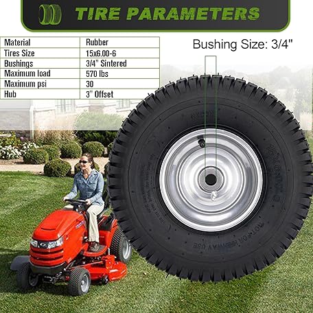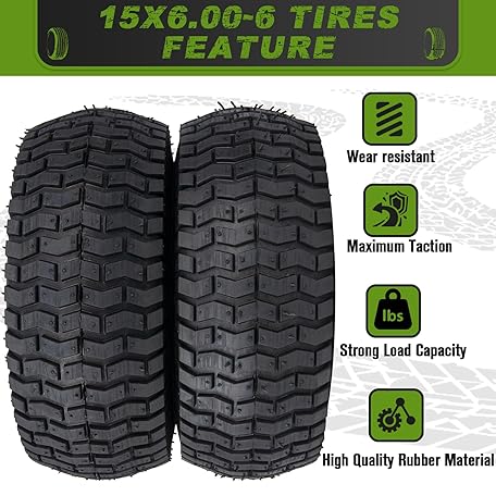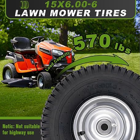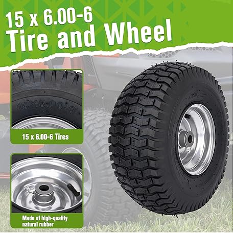 15 x 6.00-6 Tire and Wheel Front Tire Compatible with John Deere Craftsman Husqvarna Lawn Mower Tires Riding Mowers Lawn Tractors Tire