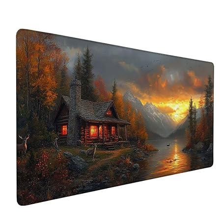 ログハウス マウスパッド 森 ゲーミングマウスパッド 大型 1600x800x3mm 大型 防水 デスクマット 底部に滑り止めゴム底 まうすぱっど 耐久無臭 汚れにくく高精度トラッキング デスクマット から選択する複数のサイズ オフィ, ゲームでやPC ノートパソコンの使用に最適,Model 817
