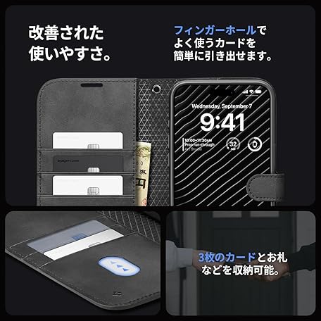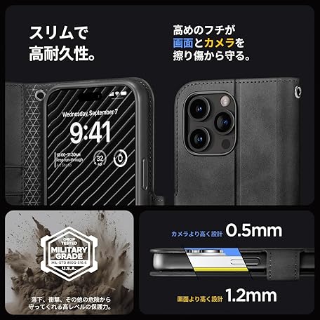[17 Years of Technology Experience] Spigen iPhone 15 Pro Case Notebook Type Shockproof US Military MIL Standard Acquired Shoulder Wrist Strap Scratch Resistant Reinforced Leather Shock Absorption