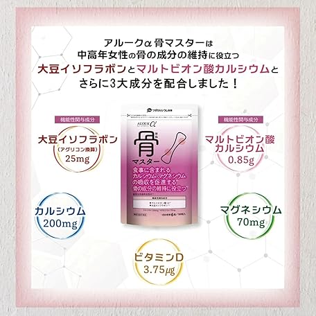 Thông tin sản phẩm Arc α Bone Master (Maintains Bone Components, Promotes Absorption of Ca), 180 Capsules, Calcium Maltobionate, Magnesium, Vitamin D, Soybean Isoflavone, Bone Supplement, Bone Health, Food with