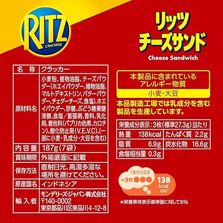 Sản phẩm モンデリーズジャパン リッツ ファミリーパック チーズサンド 187g đang được bán với giá ưu đãi là $2.5288 tại nước Nhật.