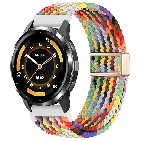 • 18mm 磁気編組 Garmin Venu 3S 41mm 腕時計バンド/Venu 4 41mm/Vivoactive 4S/Venu 2S/Vivomove 3S/Forerunner 255S 265Sに対応 伸縮性のあるナイロンスポーツストラップ 男女兼用 (改良版)