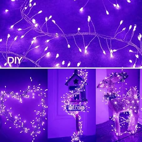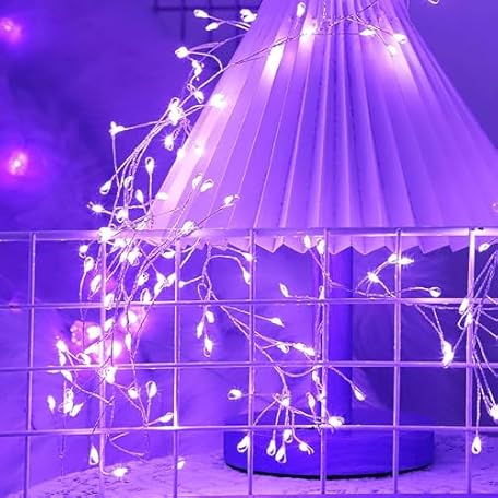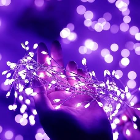Thông tin sản phẩm Firecracker String Lights, 19.68ft 200 LED Christmas Fairy Lamp Battery Powered 8 Modes Copper Wire Lamp String Garden Wedding Christmas Party Ornament, (Purple)