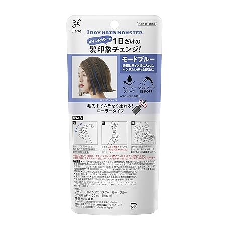 Sản phẩm リーゼ 1DAY Hair Monster (ワンデイヘアモンスター) モードブルー 20ml 〔 1日だけの髪印象チェンジ ・ ウォータープルーフタイプ ・ シャンプーで簡単OFF 〕 ヘアカラー フローラルの香り đang được bán với giá ưu đãi là $9.8754 tại nước Nhật.