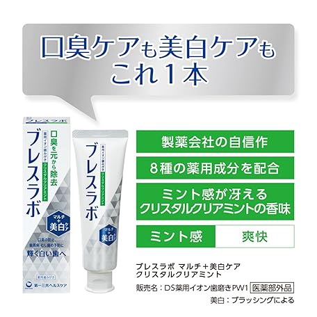 Thông tin sản phẩm Breath Lab Multi + Whitening Care Medicated Toothpaste (Removes 2 Large Breast Odor Causes) Crystal Clear Mint, 3.2 oz (90 g), CPC Blend, For Dental Cavities, Periodontal Disease Prevention