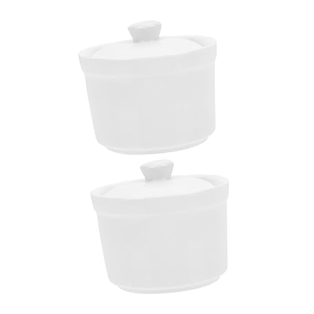 • 2個 セラミックストックポット 蓋付きスープクロック 蒸しポット シチューポット 白いセラミック製