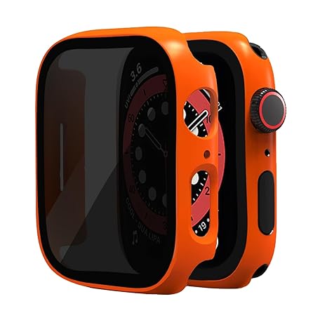 2枚パック Apple Watch Series SE 6/5/4 44mm プライバシースクリーンプロテクターケース ハードPC 傷防止 [覗き見防止] 9H強化ガラス保護カバー iWatch SE 6/5/4用 オレンジ