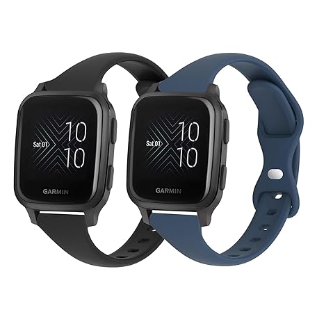 • スポーツスリムシリコン腕時計バンド 2個パック Garmin Venu Sq/Venu Sq 2対応 20mm 薄型ソフトナローストラップリストバンド Garmin Vivoactive 5 / Vivoactive 3用