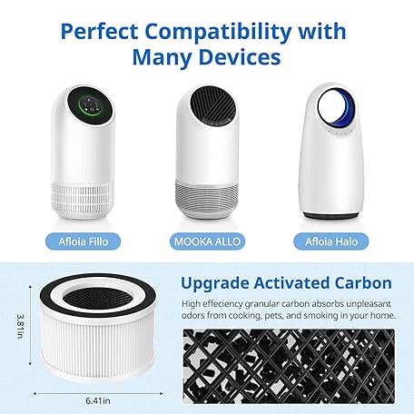 Thông tin sản phẩm 2 Pack H13 True HEPA Replacement Filter Compatible with Afloia Fillo/Halo/Mooka Allo Air Purifier, 3-in-1 Pre-Filter, H13 True HEPA, and Activated Carbon Filter