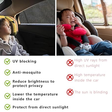 • ベビーカーサンシェード(2個パック) - UV保護&通気性スパンデックス、子供用ウィンドウサンシェード。