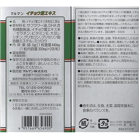 Sản phẩm マルマン イチョウ葉エキス 200粒 [機能性表示食品] đang được bán với giá ưu đãi là $32.0351 tại nước Nhật.