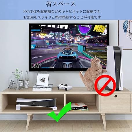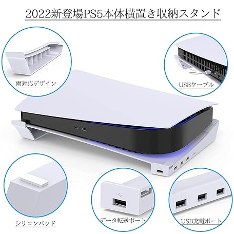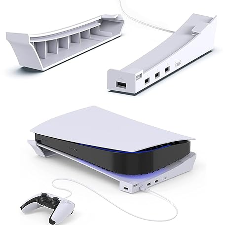 2022 PS5 Stand, Horizontal Storage Stand, Includes 4 USB Ports, Fall Prevention, Earthquake Prevention, Scratch Prevention, Improved Heat Dissipation, Supports Both PS5 Standard and Digital Versions,