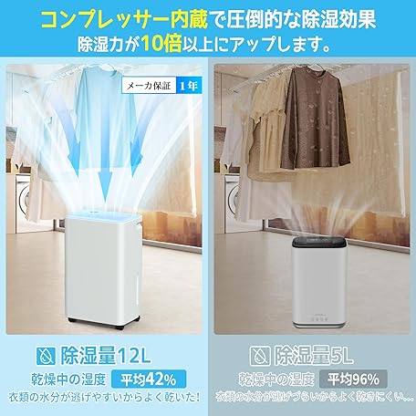 Sản phẩm 【2025最新進化】除湿機 コンプレッサー式 強力除湿 除湿器 【12L/日除湿量 木造15畳・鉄筋30畳】じょしつき 空気清浄機 衣類乾燥 マイナスイオン機能付き 集塵フィルター 2.5L大容量タンク 湿気/梅雨対策 結露/カビ防止 満水自動OFF 切タイマー キャスター搭載 强力除湿機 部屋干静音 部屋干し省エネ đang được bán với giá ưu đãi là $134.9638 tại nước Nhật.
