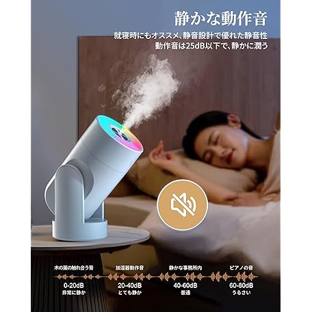 2025 Improved Model Humidifier, Up/Down Angle Adjustment, Small, Tabletop, Disinfectant, Aroma Compatible, LED Light, Ultrasonic Type, Quiet, Tabletop Auto Shut-off Function, Empty Firing Prevention