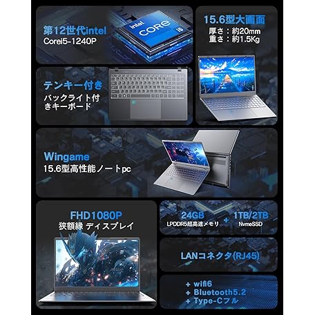 Sản phẩm 「2025モデル純正品」 Wingame office2024永続版搭載 ゲーミングノートパソコン 24GB/2TB 15.6インチ i5-1240P IPS液晶FHD 電源ケーブル付き(日本規格対応) Webカメラ内蔵 Windows11pro 軽量 薄型 バックライト付きキーボード RJ45/Type-Cフル/Micro SD(TF)/WIFI6/Bluetooth5.2/HDMI đang được bán với giá ưu đãi là $560.5325 tại nước Nhật.