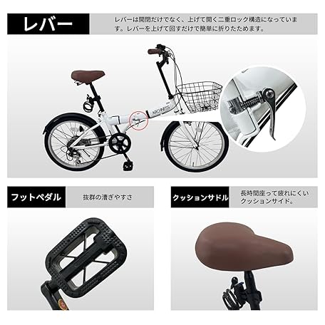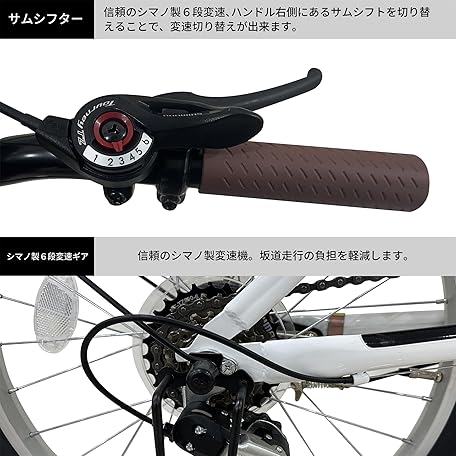 Thông tin sản phẩm 206-1B 折りたたみ自転車 20インチ 自転車 軽量 シマノ6段変速ギア カゴ ワイヤー錠・LEDライト 折り畳み 通勤 通学 街乗り [並行輸入品]