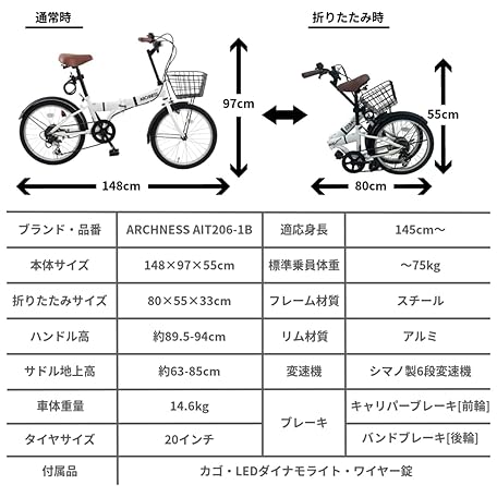 Thương hiệu ARCHNESS là cái tên nổi tiếng được rất nhiều khách hàng trên thế giới chọn lựa. Với kiểu dáng đẹp mắt, sang trọng, sản phẩm 206-1B 折りたたみ自転車 20インチ 自転車 軽量 シマノ6段変速ギア カゴ ワイヤー錠・LEDライト 折り畳み 通勤 通学 街乗り [並行輸入品] là sự lựa chọn hoàn hảo nếu bạn đang tìm mua một món cho riêng mình.