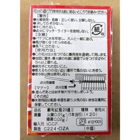 Sản phẩm 花火 爆竹 バクチク 順利紅炮20連6束入(5箱セット)鳥獣退散・厄除け・景気付け・盛り上げに!お祭りにはかかせない昼花火です!熊よけ 熊除け 音 猪 イノシシ カラス 鳥 猿 đang được bán với giá ưu đãi là $10.464 tại nước Nhật.