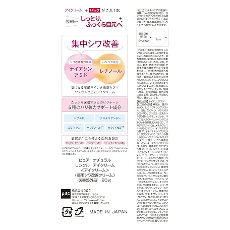 Sản phẩm ピュア ナチュラル リンクル アイクリーム 20g 医薬部外品 薬用 シワ改善 クリーム ハリ弾力 ナイアシンアミド レチノール ペプチド アスタキサンチン セラミド スキンケア Pure Natural đang được bán với giá ưu đãi là $7.2267 tại nước Nhật.