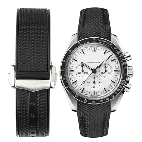 20mm カーブエンド ゴム製時計バンド オメガシーマスター 150m 300m Speedmaster moonwatch Omega X Swatch用 腕時計ストラップ ロレックスサブマリーナー GMT-Master デイトナ オイスターパーペチュアル ヨットマスター デイデート デイトジャスト エアキングウォッチバンド ブラック