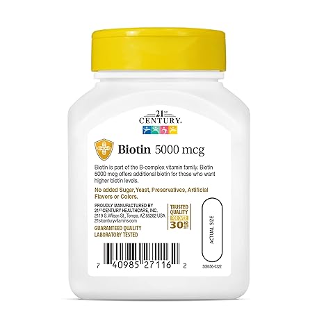Sản phẩm 【海外直送品】 21 世紀の健康ケア、ビオチン、5000 mcg 110 カプセル 21st Century Health Care, Biotin, 5000 mcg, 110 Capsules đang được bán với giá ưu đãi là $7.4665 tại nước Nhật.