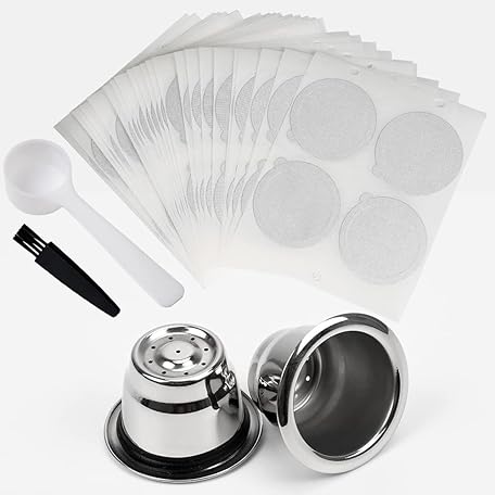 • 再利用可能なコーヒーポッド 詰め替え可能なエスプレッソカプセル ステンレススチールカップフィルター ネスプレッソオリジナルラインマシンに対応 アルミホイルシールシール付きシール(ポッド2個+蓋100個)