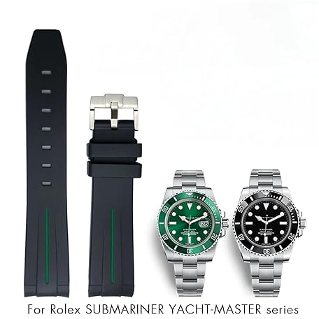 • 21mm 22mm Curved Ends Rubber Silicone Watch Band Rolex Submariner 20mm Daytona Waterproof Watch Strap, 22 mm, A