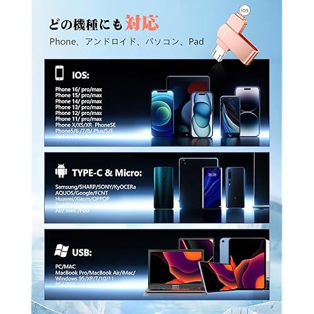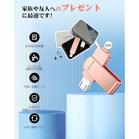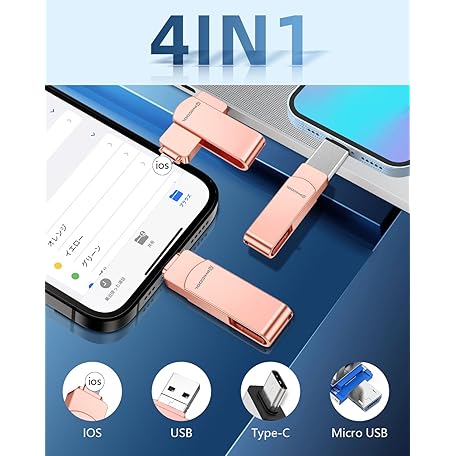 Sản phẩm 256GB USBメモリ [アプリ不要 アルバム直接保存!]4in1 Phone/Android/PC対応 phone から 直接 usb に 写真 を 移す/バックアップ可能 スマホデータ保存 外付けメモリ Type-C搭載 大容量外付けストレージ フラッシュメモリスマホ容量不足解消 高速 データバックアップ転送対応 ! (ピンク, アプリ不要256GB) đang được bán với giá ưu đãi là $21.6365 tại nước Nhật.