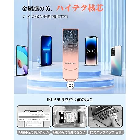 Thương hiệu PHICOOL là cái tên nổi tiếng được rất nhiều khách hàng trên thế giới chọn lựa. Với kiểu dáng đẹp mắt, sang trọng, sản phẩm 256GB USBメモリ [アプリ不要 アルバム直接保存!]4in1 Phone/Android/PC対応 phone から 直接 usb に 写真 を 移す/バックアップ可能 スマホデータ保存 外付けメモリ Type-C搭載 大容量外付けストレージ フラッシュメモリスマホ容量不足解消 高速 データバックアップ転送対応 ! (ピンク, アプリ不要256GB) là sự lựa chọn hoàn hảo nếu bạn đang tìm mua một món cho riêng mình.