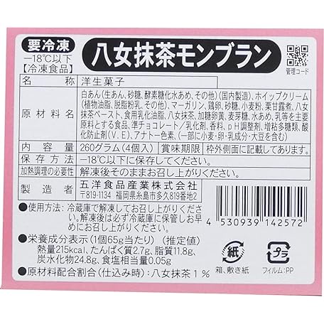 Sản phẩm 【冷凍】五洋食品産業 八女抹茶モンブラン 260g(4個) đang được bán với giá ưu đãi là $12.2407 tại nước Nhật.