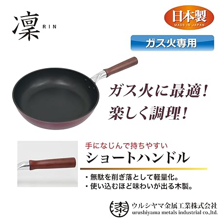 ウルシヤマ金属工業 フライパン 26cm 熱伝導性でムラなく加熱 美味しく調理 こびりつきにくい テフロンプラチナ加工 軽量 ガス火専用 日本製 熟練職人が手造りのアルミ鋳物製 凜 PFOAフリー RIN-F26
