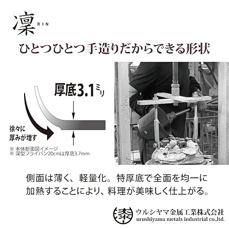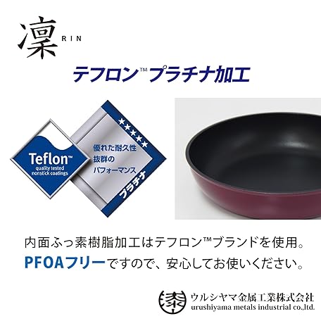 • ウルシヤマ金属工業 フライパン 26cm 熱伝導性でムラなく加熱 美味しく調理 こびりつきにくい テフロンプラチナ加工 軽量 ガス火専用 日本製 熟練職人が手造りのアルミ鋳物製 凜 PFOAフリー RIN-F26
