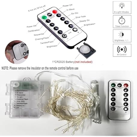 Thông tin sản phẩm Firecracker String Lights, 29.5ft 300 LED Christmas Fairy Lamp Battery Powered 8 Modes Copper Wire Lamp String Garden Wedding Christmas Party Ornament, (Green)