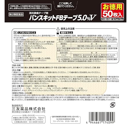 Sản phẩm 【第2類医薬品】バンスキットFBテープ5.0%V 50枚 đang được bán với giá ưu đãi là $15.3581 tại nước Nhật.