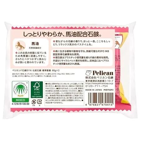 Thông tin sản phẩm ペリカン石鹸 ペリカンファミリー石鹸馬油2P(80g×2)