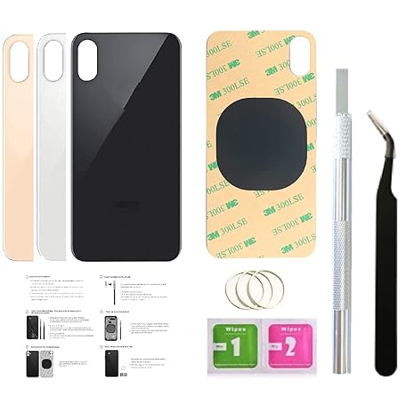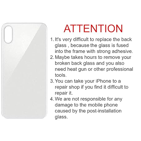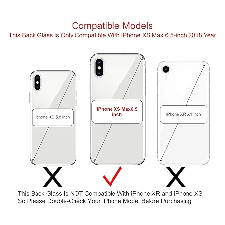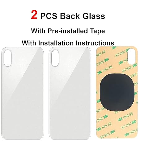 • 2pcs Back Glass Replacement Back Cover Glass for iPhone Xs Max (6.5") Tape and Repair Tool (Silver/White)