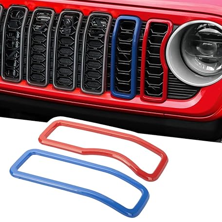 2pcs Front Grille Ring Frame Grille Insert Cover Trim Kit for Jeep Wrangler JL JLU & Gladiator JT 2024 2025 (Blue & Red)