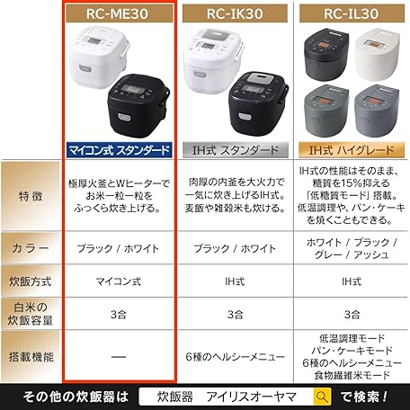 Sản phẩm アイリスオーヤマ 炊飯器 3合 マイコン式 40銘柄炊き分け機能 極厚火釜 玄米 2020年モデル ブラック RC-ME30-B đang được bán với giá ưu đãi là $63.2091 tại nước Nhật.