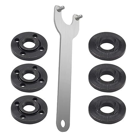 アングルグラインダーフランジナット&レンチ3個セット - 4.5インチ、5インチ、7インチ、5インチ、5インチ、5/8インチ-11スレッド用、Dewalt、Milwaukee、Makita、Bosch、Black & Decker、R-yobiに対応 – 193465-4、224399-1、2224399-1、222の交換用。 4568-。 4個。