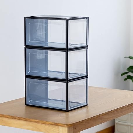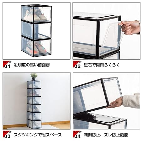 Thông tin sản phẩm 八番屋 シューズボックス スニーカーボックス 収納ボックス シューズラック 靴棚 靴収納 玄関収納 下駄箱 ブラック 3個セット