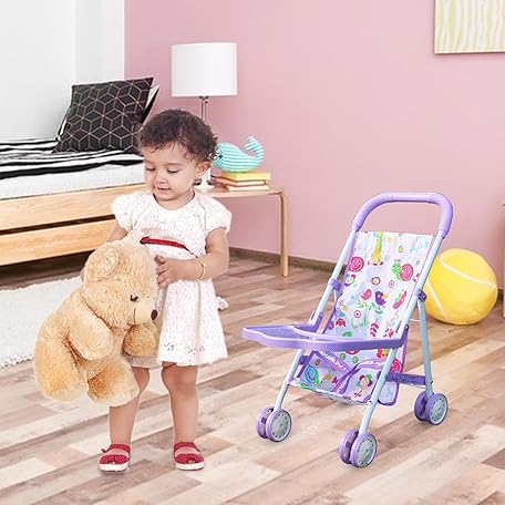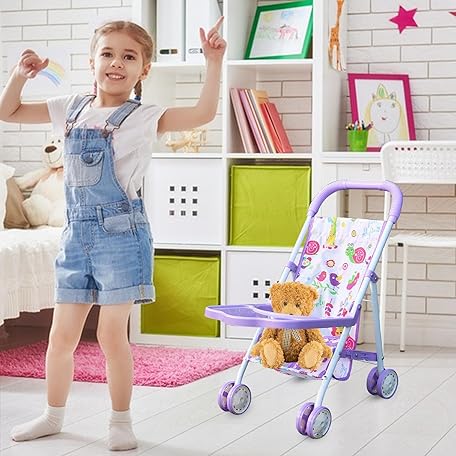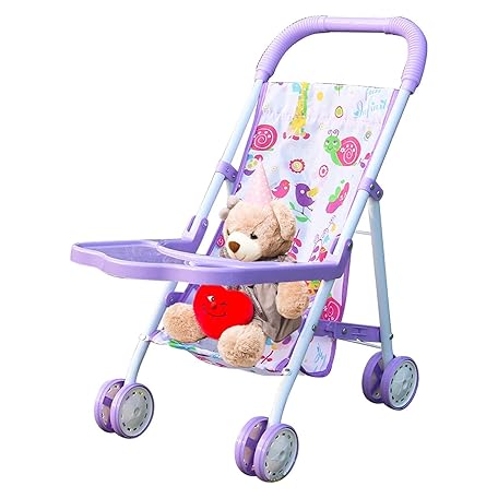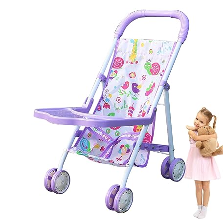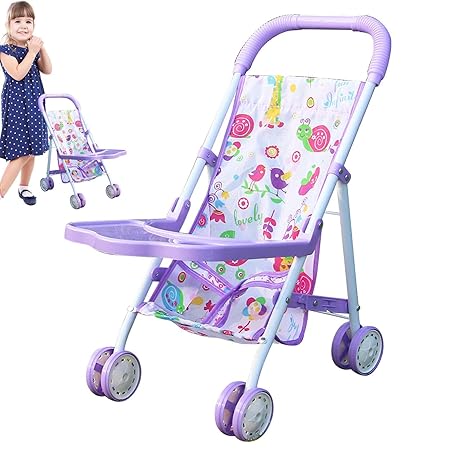 • ベビーカーを再生 折りたたみ式 ボトムバスケット付きキッドドールベビーカー 3歳以上の子供向けの誕生日クリスマス ホリデー用の折りたたみ式、軽量、ギフト用おもちゃ