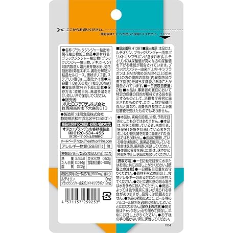 Sản phẩm オリヒロ 脂肪・尿酸ダウン 30粒 機能性表示食品ブラックジンジャー由来ポリメトキシフラボン ルテオリン ×2個 đang được bán với giá ưu đãi là $22.0834 tại nước Nhật.