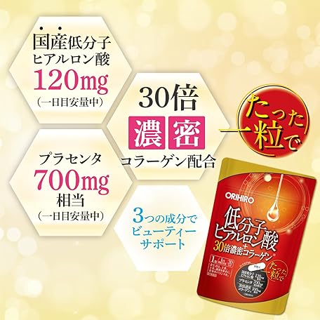 Sản phẩm オリヒロ 低分子ヒアルロン酸+30倍濃密コラーゲン 30粒 đang được bán với giá ưu đãi là $11.6085 tại nước Nhật.