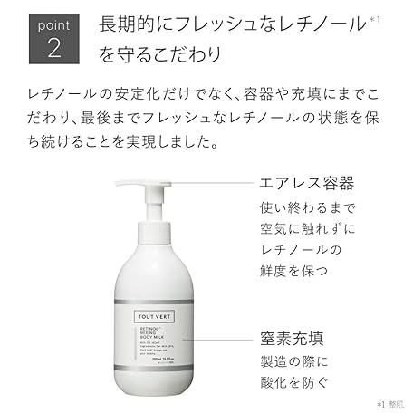 Sản phẩm 【純粋レチノール】トゥヴェール レチノミルク 300mL ボディミルク レチノール グルタチオン セラミド ハリ 透明感 エイジングケア 保湿 乾燥肌 しっとり 窒素充填 大容量 無香料 đang được bán với giá ưu đãi là $19.5328 tại nước Nhật.