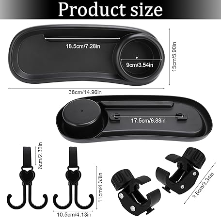 • ベビーカースナックトレイ 3イン1 ベビーカーカップホルダー携帯電話ホルダーと2個パック ラブハートハンガー ベビーカートレイアタッチメント 赤ちゃん 幼児 子供用