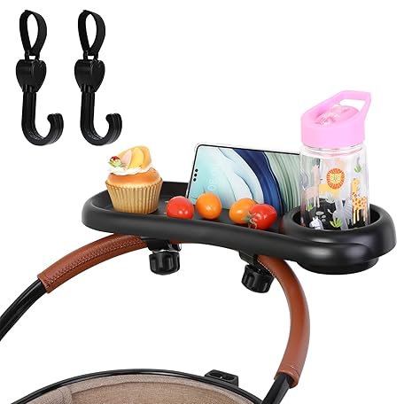 ベビーカースナックトレイ 3イン1 ベビーカーカップホルダー携帯電話ホルダーと2個パック ラブハートハンガー ベビーカートレイアタッチメント 赤ちゃん 幼児 子供用