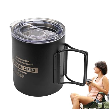 • ステンレススチール製コーヒーマグ、トラベルコーヒーカップ,折りたたみ可能なハンドルと蓋付きのマグカップ | コーヒー、ミルク、ジュース、紅茶、その他の冷たい飲み物または温かい飲み物用の320mlのポータブルカップ