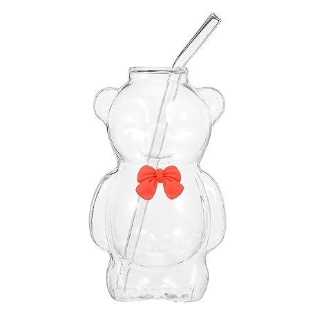 • かわいいクマカップ:クリスマスマグクマガラスカップストロー付き330ml - ジュース、ミルクティー、スムージー、水などの飲み物用のかわいいドリンクボトル
